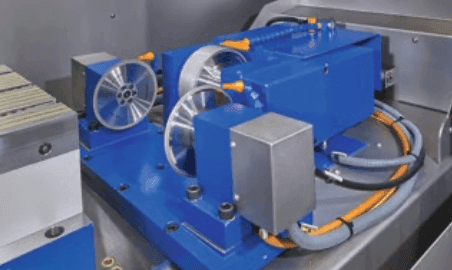 Abrichttechnologie – Im High-End Bereich kommt der Formgebung und Schärfe der Schleifscheibe eine besondere Bedeutung zu. Unsere Abrichttechnologie basiert auf angetriebenen Abrichtrollen, deren Verschleiß geringer und die Standzeiten deutlich höher sind, als bei herkömmlichen Abrichtern.